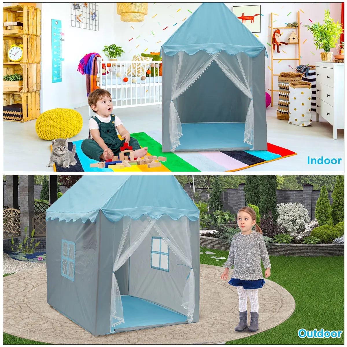 La magie de la Maison Châteaux s'amplifie lorsqu'elle est partagée. Suffisamment spacieuse pour accueillir plusieurs enfants, elle devient le théâtre de jeux de rôle passionnants et de moments de complicité uniques. Que ce soit pour une fête d'anniversaire ou un simple après-midi entre amis, cette tente transforme chaque rencontre en une aventure mémorable.